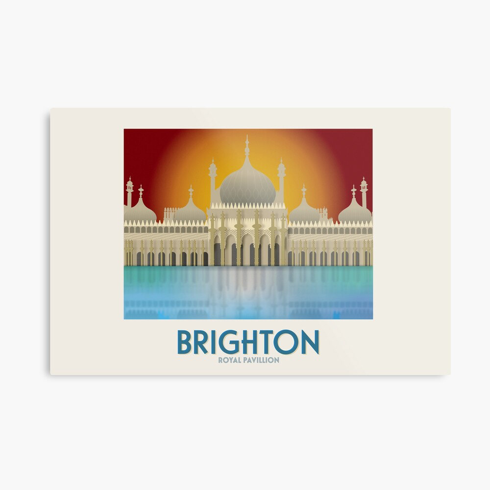 Views of the famous Brighton pier and Brighton Pavillion, reminiscent of the travel posters of the 30s.